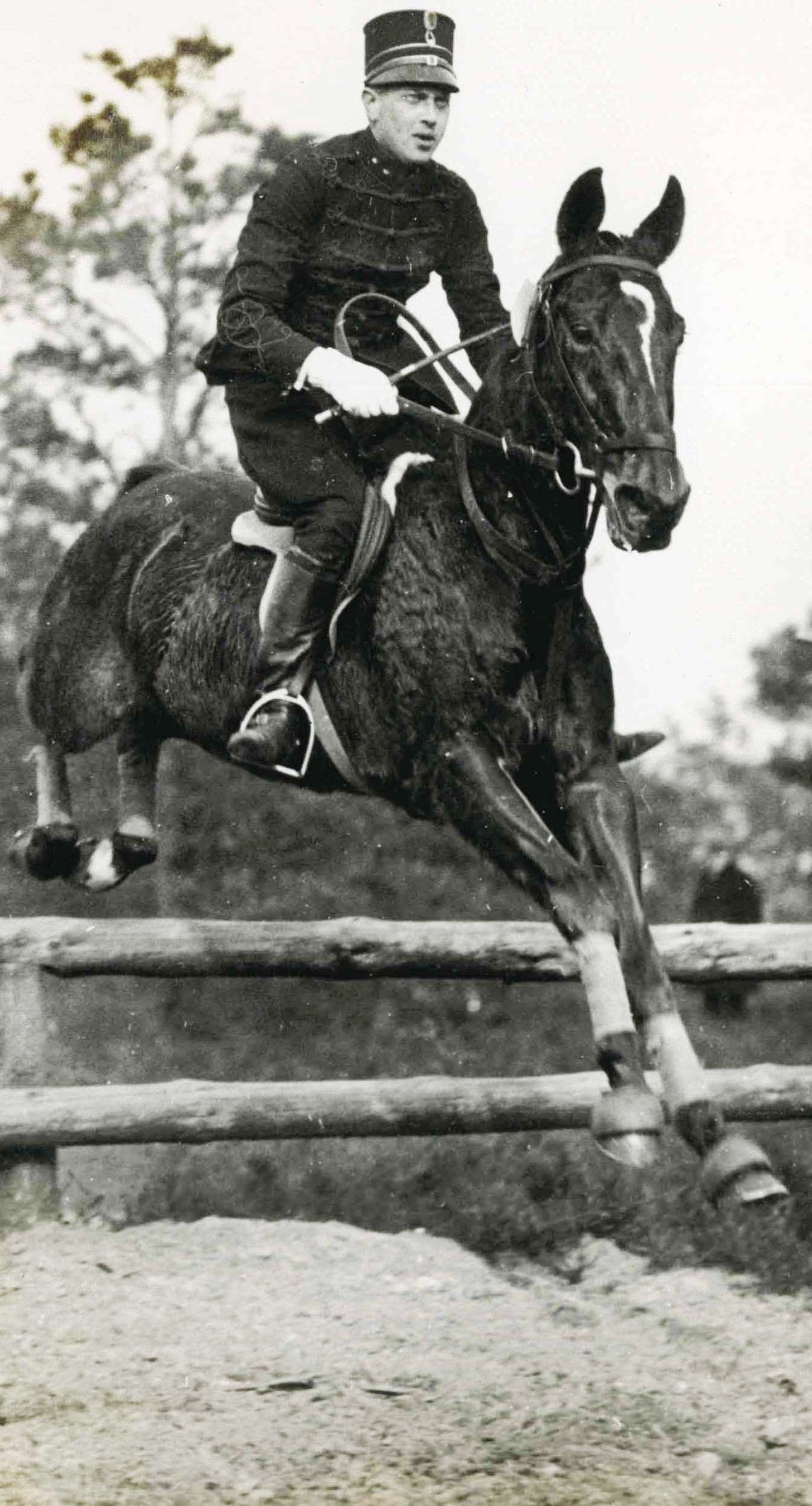 Het rijden van een cross-country op een onbekend paard is vanouds een militaire proeve van bekwaamheid. Hier luitenant Arie Vlielander met Marcius tijdens de Cross-Country voor Nieuwelingen in 1932 (in attila)