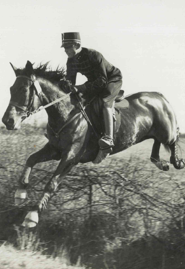 | Luitenant Lodewijk Cnopius nam in 1932 deel aan de vijfkamp en behaalde als een der eersten het in 1931 ingestelde Nationale Vijfkampkruis NOC*NSF; hier met Lottka in de cross-country |